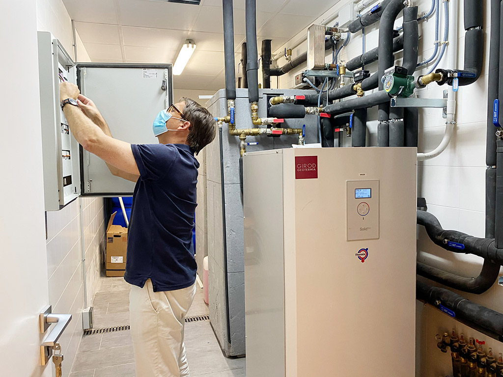 Calefacción y frío activo por suelo radiante-refrescante, fancoils de apoyo y ACS.